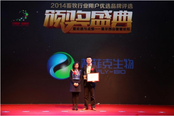 2014畜牧行業(yè)用戶優(yōu)選“十佳添加劑品牌”獎:寶來利來、樂達、興嘉生物、北京愛綠、諾偉司、北京昕大洋、駐馬店華中正大、奧特奇、海納川藥業(yè)、康德權。
