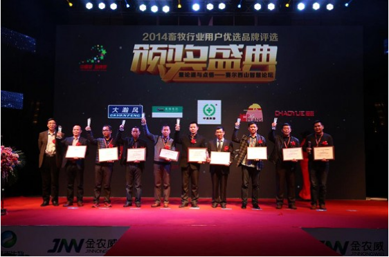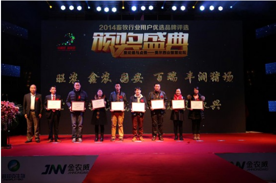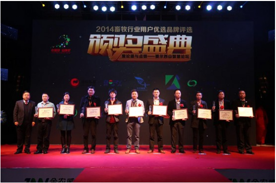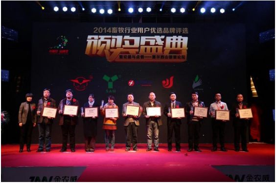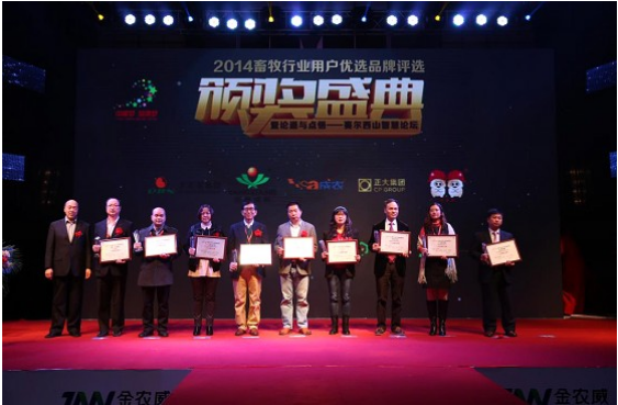 2014畜牧行業(yè)用戶優(yōu)選“最具競爭力十大品牌”獎:信得科技、金鑼、加美、天康生物、禾豐牧業(yè)、牧羊、維科生物、美神、溫氏集團、金河藥業(yè)。