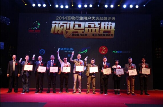 2014畜牧行業(yè)用戶優(yōu)選“十佳畜牧機械品牌”獎:正昌集團、牧羊、京鵬畜牧、增鑫牧業(yè)、牧疆南北、金鼎自控、南牧機械、現(xiàn)代人、洋工機械、天地實業(yè)。