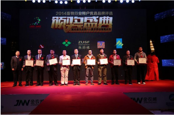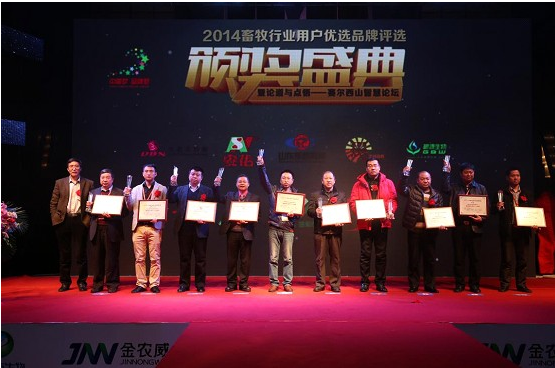 2014畜牧行業(yè)用戶優(yōu)選“十佳養(yǎng)殖合作社”獎:旺農、鑫農、國安、百瑞、豐潤豬場、圣達、牧樂、南川河、龍泉、永興。