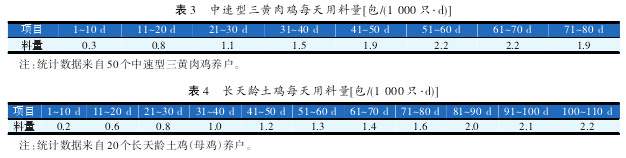 3.2中速型三黃肉雞每天用料量(見(jiàn)表3)