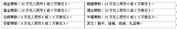 贊助區(qū):僅接受贊助企業(yè),光地1500元/平米,標(biāo)準(zhǔn)展位15000元/個(gè)
