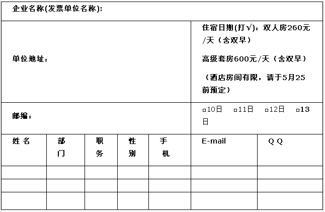 注:一但通知預定成功后,會務組將交押金于酒店,如果您有任何變動請及時提前五天通知我們,通知電話010-88852357(駱尚果),以免因為給會務帶來不必要的損失。