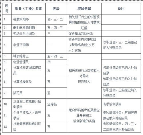 去年,全市共有32.3萬名勞動者參加補貼培訓,享受補貼政策。在此次新增的18個補貼項目中,包括為促進會展、文化傳媒等新興行業(yè)從業(yè)人員技能提升,增加了會展策劃師、電影電視攝影師等職業(yè)的培訓項目。為進一步促進和諧勞動關系,加快培養(yǎng)相關專業(yè)人才,增加了勞動關系協(xié)調(diào)員三級培訓項目,為推進今年市政府幫助成功創(chuàng)業(yè)1萬人的實事項目的落實,增加了創(chuàng)業(yè)咨詢師一級培訓項目。同時,還增加了企業(yè)職工技能提升專項培訓、物業(yè)管理員、插花員、計算機安裝調(diào)試維修員等項目。