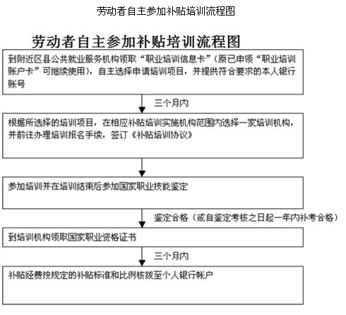 據(jù)悉,凡符合本市培訓補貼條件的勞動者參加補貼培訓目錄內(nèi)項目的技能培訓和考核鑒定,成績合格的可按規(guī)定享受職業(yè)技能培訓補貼。需要參加培訓的勞動者可在區(qū)縣公共就業(yè)服務機構的指導下,自主選擇申請補貼培訓目錄內(nèi)的培訓項目并提交個人銀行賬號。同時,在本市經(jīng)認定可承擔補貼培訓任務的培訓機構范圍內(nèi)選擇機構報名參加培訓,考核鑒定合格的,補貼經(jīng)費直接核撥到個人銀行賬戶。