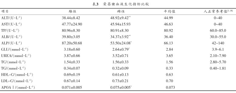通過系統(tǒng)研究成年榮昌豬不同性別血液生理生化及免疫指標(biāo)的變化情況及其差異,確定了榮昌豬血液生理生化及免疫指標(biāo)的基礎(chǔ)數(shù)據(jù),為探究榮昌豬的品種特性及其在畜牧生產(chǎn)和醫(yī)學(xué)研究上進(jìn)一步利用提供了參考。榮昌豬和人的血液生理生化特性存在一定的相似性,是理想的醫(yī)學(xué)研究用實(shí)驗(yàn)動(dòng)物。