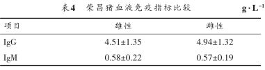 3.1 榮昌豬及其他豬種血液生理生化及免疫指標(biāo)