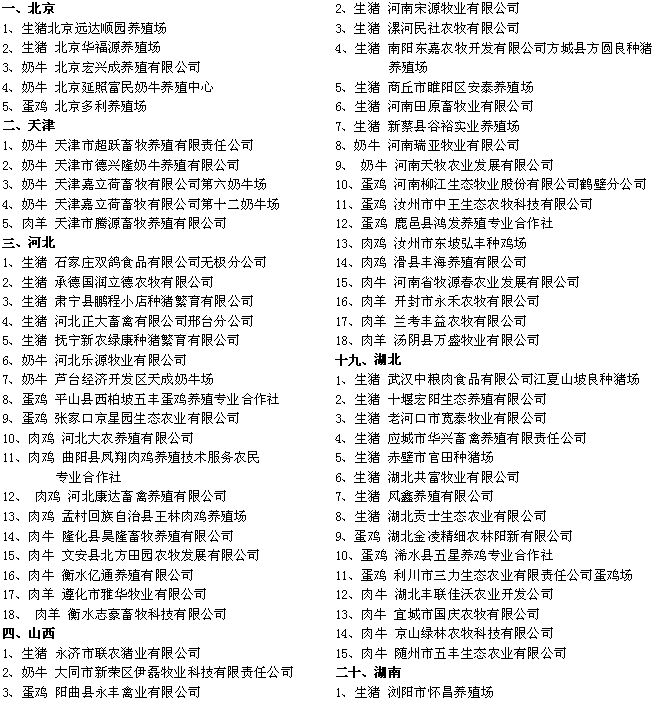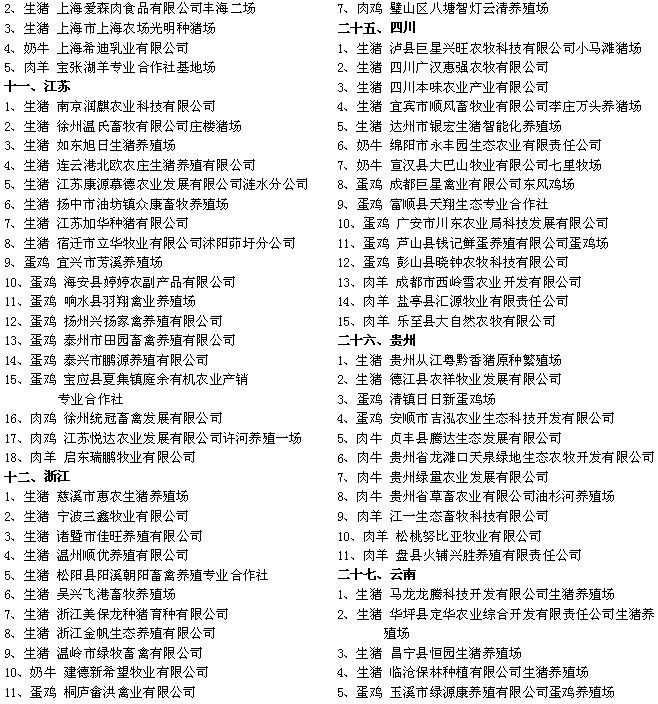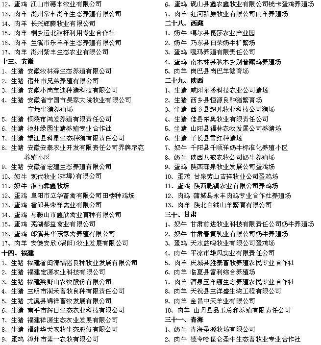 農(nóng)業(yè)部辦公廳公布2015年畜禽標(biāo)準(zhǔn)化示范場(chǎng)名單