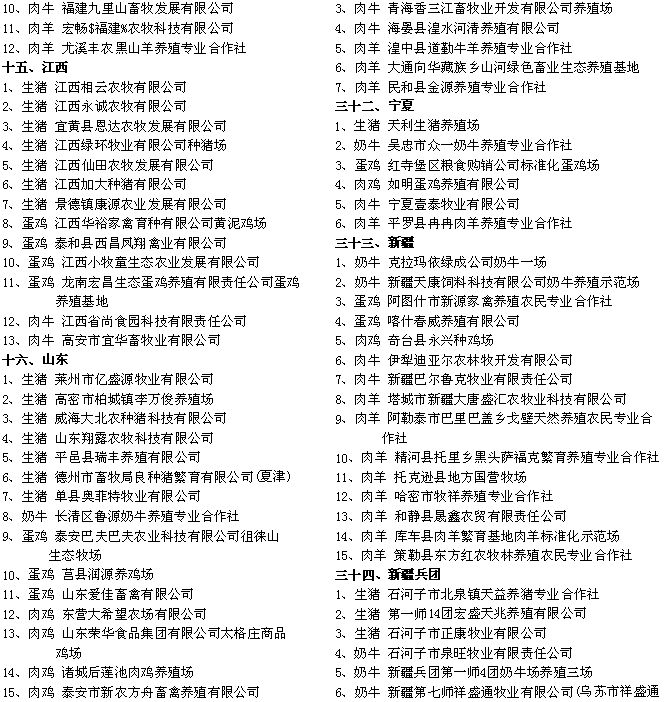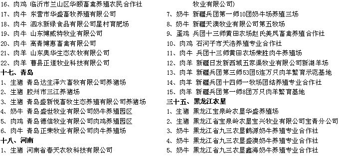 附件:2015年農(nóng)業(yè)部畜禽標(biāo)準(zhǔn)化示范場(chǎng)名單