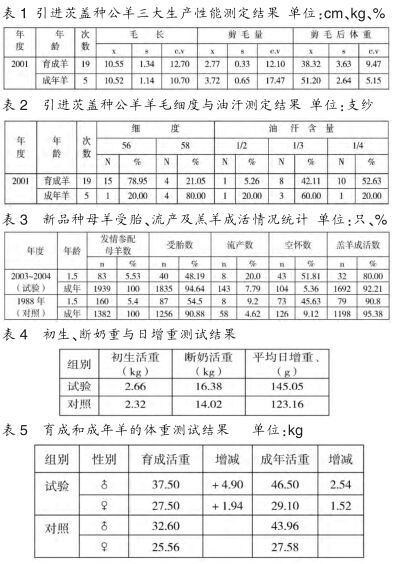 2 引進(jìn)茨蓋羊的生產(chǎn)性能和羊毛品質(zhì)(見表1,表2)