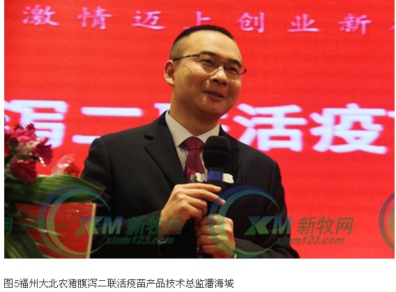 “福建生豬養(yǎng)殖占畜牧業(yè)的70%以上,做好生豬養(yǎng)殖的疾病防控和解決產(chǎn)品的質(zhì)量安全有著十分重要的意義?!比~恩發(fā)表示,豬腹瀉病和藍耳病對養(yǎng)豬業(yè)的嚴重危 害已經(jīng)成為業(yè)內(nèi)的共識,福州大北農(nóng)公司發(fā)揮自身的科研和技術優(yōu)勢與北京大北農(nóng)動物醫(yī)學研究中心合作研發(fā)的豬腹瀉二聯(lián)活疫苗已獲得了農(nóng)業(yè)部新獸藥證書,不久 產(chǎn)品將推向市場,這是疫苗研發(fā)、生產(chǎn)和生豬養(yǎng)殖領域的一件大事,可喜可賀。