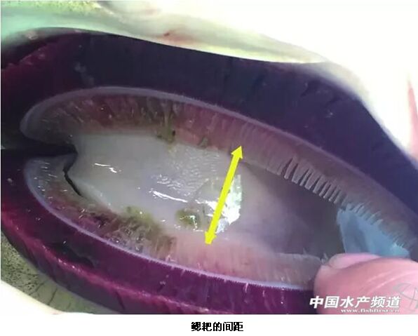鳙魚為濾食性魚類,其主要進食微小的浮游動物和浮游植物,所以我們日常使用的2.0mm、3.0mm顆粒的飼料粒徑不適用于鳙魚,鳙魚進食顆粒的大小主要取決于鰓耙間隙和咽喉的孔徑(見圖)。目前通威股份在華南地區(qū)推廣的飼料投喂模式為“133粉料+151膨化料”模式,飼料使用過程中要針對不同規(guī)格的鳙魚使用不同粒徑的飼料,若前期使用大粒徑的膨化料,則會因為難以通過其咽喉被吐出,所以在此階段最好使用粉料投喂。而到了后期,鳙魚到了半斤以上,隨著鳙魚的生長,鰓耙的間距也較前期加大,粉料會隨著水流從加大的鰓耙間距排出,使鳙魚從外界攝取的餌料減少,從而影響鳙魚的生長,很多精養(yǎng)鳙魚的客戶反應使用粉料在1斤半后生長速度減緩則多由此引起,所以養(yǎng)殖過程中選擇鳙魚飼料時一定要考慮存塘鳙魚的規(guī)格來定,而通威“133粉料+151膨化料”模式則很好的解決了這一問題。