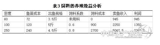 表3為使用揭陽通威飼料有限公司“133粉料+151膨化料”飼料組合模式的養(yǎng)殖效益分析表,飼料按6000元/噸計算,魚價按4.5元/斤計算,按照通威的養(yǎng)殖用料模式,草魚塘中放養(yǎng)100-250條/畝的鳙魚較60條/畝的鳙魚可增加效益400-1400元/畝。