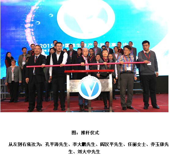 最后,由農(nóng)業(yè)部畜牧業(yè)司飼料處副處長(zhǎng)李大鵬先生、浙江省飼料與動(dòng)物保健品協(xié)會(huì)秘書(shū)長(zhǎng)任麗女士、中國(guó)畜牧獸醫(yī)學(xué)會(huì)常務(wù)副理事長(zhǎng)閻漢平先生、中國(guó)畜牧獸醫(yī)學(xué)會(huì)副秘書(shū)長(zhǎng)喬玉鋒先生、泰高中國(guó)動(dòng)物營(yíng)養(yǎng)TNB業(yè)務(wù)商務(wù)總監(jiān)劉大中先生、以及承辦方代表——北京博亞和訊農(nóng)牧技術(shù)有限公司總經(jīng)理孔平濤先生共同推動(dòng)象征論壇的推桿!2015中國(guó)維生素產(chǎn)業(yè)發(fā)展高層論壇正式開(kāi)幕。