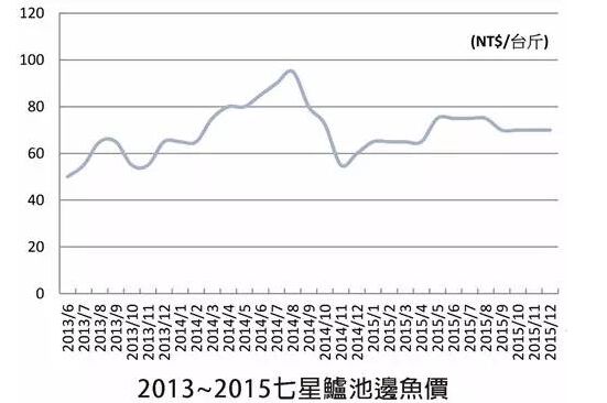 柯德義表示,七星鱸產(chǎn)業(yè)起伏很大,十多年前七星鱸最低甚至只有一臺斤18元的記錄,好的時候漲到一臺斤130元。在2011及2012年因放養(yǎng)量突然大量增加,需要養(yǎng)殖2年供應(yīng)外銷日本市場的1.5公斤大規(guī)格魚也暴量,使得前年魚價下跌很厲害,很多人都虧錢。