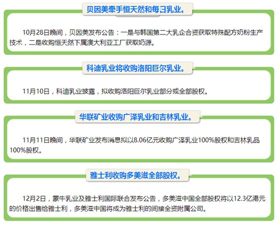 乳企新政和戰(zhàn)略互需是乳品企業(yè)兼并重組的核心驅(qū)動力。通過引進(jìn)合作伙伴,整合優(yōu)質(zhì)奶源、先進(jìn)技術(shù)、市場資源、全產(chǎn)業(yè)鏈成功模式等,加快發(fā)展步伐。