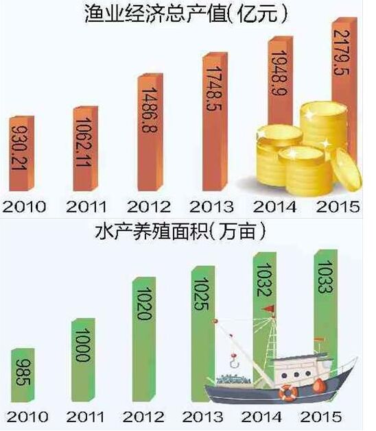 多項(xiàng)“全國(guó)第一”,筑牢湖北水產(chǎn)地位:2015年淡水產(chǎn)品總量455.89萬(wàn)噸,連續(xù)20年雄居全國(guó)榜首,養(yǎng)殖面積、人均占有量、淡水漁業(yè)科技實(shí)力等多項(xiàng)綜合性指標(biāo)均居全國(guó)第一。全省漁業(yè)總產(chǎn)值達(dá)到2179.5億元,比2010年增長(zhǎng)134%,實(shí)現(xiàn)翻番。全省漁民人均純收入15515元。漁業(yè)一產(chǎn)業(yè)產(chǎn)值1032億元,比2010年增長(zhǎng)103%,二三產(chǎn)業(yè)產(chǎn)值1147億元,比2010年增長(zhǎng)171%,提前兩年實(shí)現(xiàn)“雙千億生態(tài)產(chǎn)業(yè)”目標(biāo)。水產(chǎn)業(yè)已經(jīng)成為全省農(nóng)業(yè)農(nóng)村經(jīng)濟(jì)中最具活力的特色優(yōu)勢(shì)產(chǎn)業(yè)和支柱產(chǎn)業(yè),成為促進(jìn)農(nóng)業(yè)穩(wěn)定發(fā)展、農(nóng)民持續(xù)增收的亮點(diǎn)產(chǎn)業(yè)。