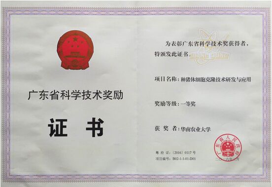 國家生豬種業(yè)工程技術(shù)研究中心主任、珠江學(xué)者吳珍芳教授課題組成果“種豬體細胞克隆技術(shù)研發(fā)與應(yīng)用”榮獲廣東省科技進步一等獎。