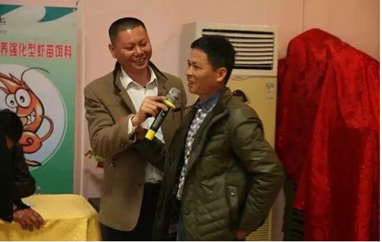 惠州澳華技術(shù)部經(jīng)理沈秋雄(紅衣者)認(rèn)為不喂或者投喂?fàn)I養(yǎng)不足的開口料造成蝦苗營(yíng)養(yǎng)斷層繼而引起大量蝦死亡。