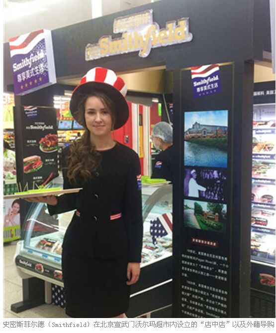 雙匯集團北京辦事處美式主管裴永正表示,史密斯菲爾德品牌的產(chǎn)品今年1月份以來已經(jīng)逐漸進入各大商超,提供面向普通消費者的高端產(chǎn)品。目前已在北京物美、華普、京客隆、沃爾瑪、家樂福、華聯(lián)、永輝等多家賣場實現(xiàn)進店銷售,同時在華普、沃爾瑪、家樂福中設立的“店中店”,市場反響良好。僅宣武門沃爾瑪單店的銷售就可以達到日均80份,周末150-200份左右。