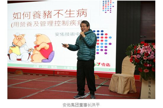 會上,山東安佑總經(jīng)理黃浩首先致歡迎辭,緊接著,洪翊棻講述系統(tǒng)營養(yǎng)對開發(fā)母豬潛能的重要性,并對常見的母豬缺奶現(xiàn)象提出對策。山東安佑技術(shù)服務(wù)部經(jīng)理任慶海向大家展示了山東省大型規(guī)?;i場使用安佑母豬料的效果。隨后,洪平從環(huán)境、管理、營養(yǎng)、防疫等方面深入淺出地闡述了《如何養(yǎng)豬不生病》的課題,洪平首次提出“不來、不發(fā)、不傳、不怕”的“四不”的養(yǎng)殖新理念及12項解決對策,針對性地把控了養(yǎng)豬各個環(huán)節(jié),贏得了現(xiàn)場一陣陣掌聲,反響熱烈。