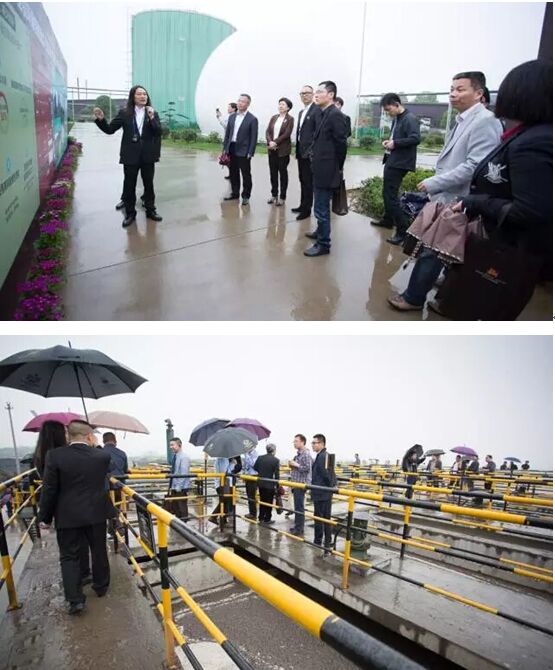 在基地生態(tài)循環(huán)區(qū),舒總向參會(huì)領(lǐng)導(dǎo)和代表嘉賓介紹了美保龍全程設(shè)計(jì)以"環(huán)境友好型、資源節(jié)約型、生態(tài)效益型"為指導(dǎo)原則,從前期規(guī)劃、生產(chǎn)工藝、污水處理、循環(huán)利用四個(gè)維度做好環(huán)保工作。一路上,舒總介紹了污水處理中心、噴灌系統(tǒng)、發(fā)電機(jī)組以及建設(shè)中的人工生態(tài)濕地和玻璃溫室水生蔬菜栽培等循環(huán)區(qū)設(shè)施?;貎?nèi)部生態(tài)循環(huán)系統(tǒng),通過(guò)前期減排,中期高效污水處理,后期循環(huán)利用的生態(tài)循環(huán)系統(tǒng),達(dá)到既防止污染又循環(huán)利用增加效益的雙重目的。