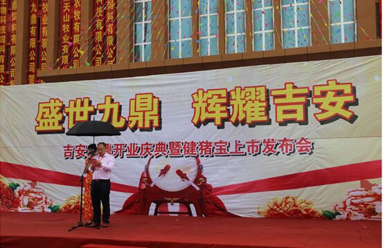 借著開業(yè)慶典的東風(fēng),吉安九鼎農(nóng)牧有限公司總經(jīng)理宣布了九鼎集團無抗飼料健豬寶在吉安九鼎的上市,標(biāo)志著吉安九鼎無抗豬肉產(chǎn)業(yè)鏈正式啟動。