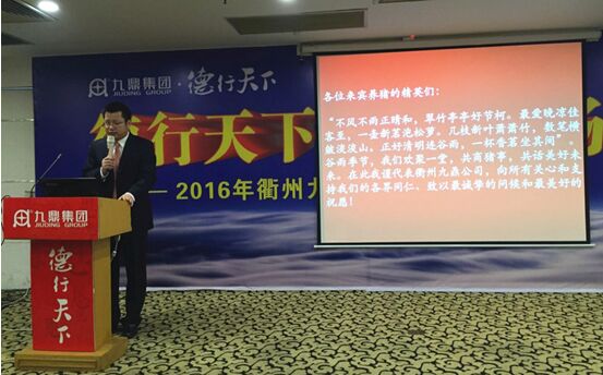 2016年4月18日,來(lái)自衢州及龍游各地的120多位規(guī)模豬場(chǎng)老板共聚在龍游國(guó)際飯店三樓騰龍閣,共同見(jiàn)證衢州九鼎濃縮料上市推廣會(huì)的隆重召開(kāi),衢州九鼎再次騰龍起駕,翱翔浙西。