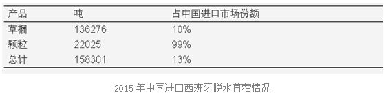 自西班牙脫水苜蓿進入中國市場后,33家西班牙企業(yè)已獲準對華出口苜蓿草資格。2015年出口中國15.83萬噸,成為第二大對華苜蓿供應(yīng)國。