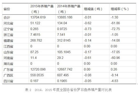 1、由于價格問題,所有羅非魚養(yǎng)殖戶積極性不高,2015年下半年投苗量整體明顯下降,加上16年1月22-29日全國范圍超強寒流的影響,致使南方地區(qū)大面積降溫,造成大面積死魚,損失慘重。2016年羅非魚總產(chǎn)量預計減少15%以上,價格與15年比較有所上升,羅非魚的價位有望從嚴冬走向陽光。