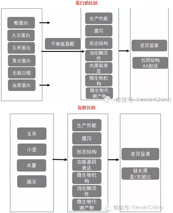 蛋白質(zhì):植物性蛋白與動物性蛋白的對比;氨基酸:天然蛋白來源與人工合成的對比;能量:碳水化合物與脂肪、蛋白質(zhì)的對比;脂肪:植物源與動物源的對比;礦物質(zhì):無機源與有機源的對比等。