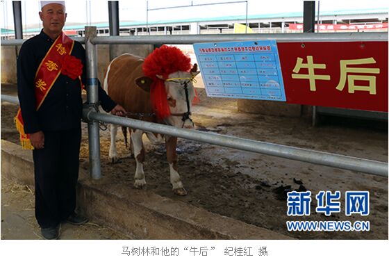 “我是昨天晚上9點(diǎn)多接到通知說我的牛獲獎(jiǎng)了,我之前參加評(píng)比的時(shí)候想,我的牛應(yīng)該能評(píng)個(gè)二等獎(jiǎng),沒想到評(píng)了個(gè)‘牛后’?!眮碜院Th史店鄉(xiāng)徐坪村的馬樹林站在他養(yǎng)的“牛后”旁邊對(duì)著鏡頭高興地說。
