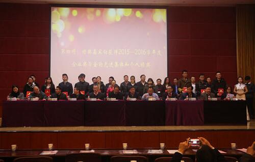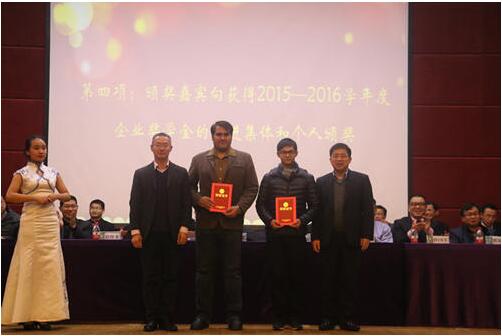頒獎典禮上,總裁張衛(wèi)元先生、各位與會企業(yè)家及學校領導向2015-2016學年度企業(yè)獎學金獲獎先進集體和個人頒發(fā)了榮譽證書。