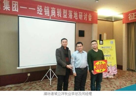 隨后,征宇制藥(集團(tuán))山東區(qū)域經(jīng)理孫家良經(jīng)理上臺致辭,在孫經(jīng)理的帶領(lǐng)下,濰坊諸城立洋牧業(yè)閔德寶經(jīng)理為大家分享了他負(fù)責(zé)的市場從開始認(rèn)識豬滿圈到至今豬滿圈已鋪滿諸城各個(gè)區(qū)域的經(jīng)歷。分享中閔經(jīng)理講到,某120頭母豬場2015年7月份時(shí)母豬出現(xiàn)配種困難,配上種后坐胎不穩(wěn)的情況,使用“豬滿圈+姆力健”5個(gè)月后,豬場母豬返情率、坐胎不穩(wěn)現(xiàn)象幾乎沒有了,目前豬場特別穩(wěn)定,感謝“豬滿圈+姆力健”為他創(chuàng)造財(cái)富。