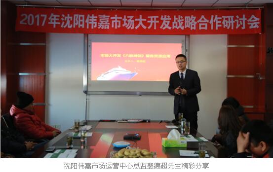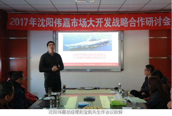 美名揚(yáng)四海,客從千里來!2016年12月24日,沈陽偉嘉市場大開發(fā)戰(zhàn)略合作研討會(huì)在遼寧沈陽成功舉辦。沈陽偉嘉總經(jīng)理趙寶凱先生、大偉嘉股份廣東分公司總經(jīng)理韓仲琪先生、沈陽偉嘉市場運(yùn)營中心總監(jiān)裴德超先生及20名廣東省戰(zhàn)略合作伙伴共同出席。