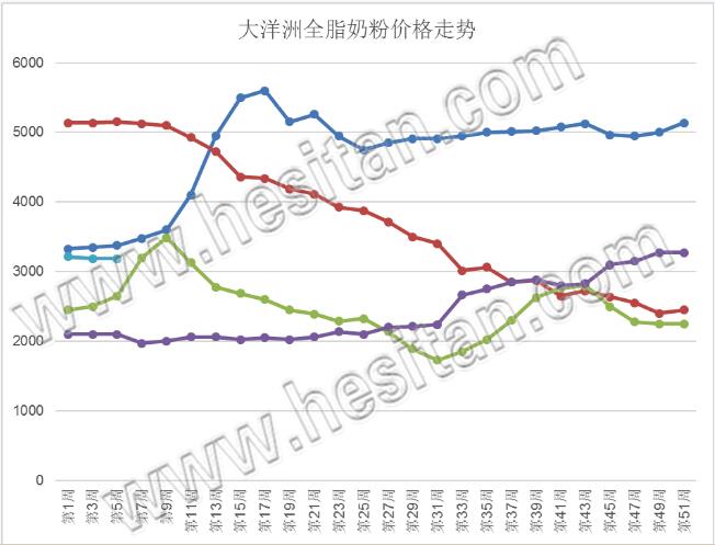 圖4大洋洲全脂奶粉價(jià)格(美元/噸)