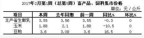 據(jù)對(duì)全國500個(gè)集貿(mào)市場的定點(diǎn)監(jiān)測,2月份第1周(采集日為2月3日)生鮮乳、玉米價(jià)格持平。