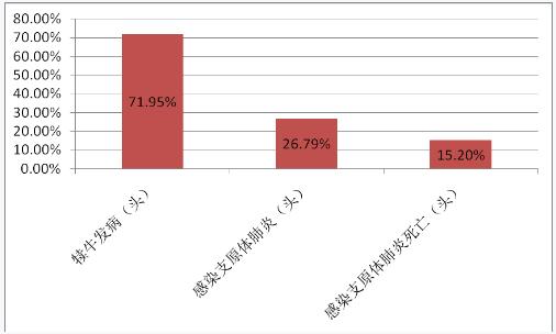 犢?;贾гw肺炎的比率由活動前的26.79%,降低到活動后的14%,犢牛死亡率由活動前的15.2%,降低到5%以內(nèi)。