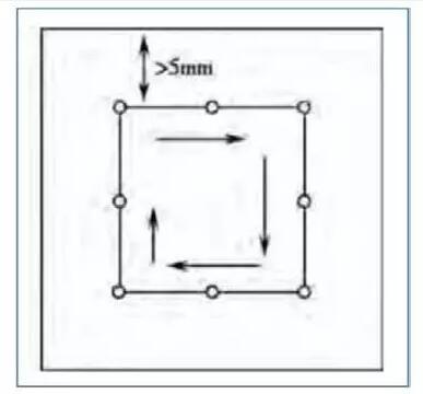 這對于非專業(yè)技術人員來講,是需要培訓與提高的,必須制定出一套操作程序SOP規(guī)范。比如顯微鏡下精子計數(shù),按照順序選擇評估至少5個區(qū)域,每個區(qū)域至少需距離蓋玻片邊緣5mm,如圖2所示。