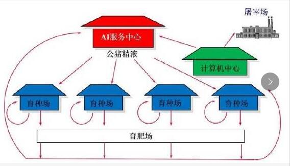 父系指數(shù)遠比母系指數(shù)的經濟價值高。近十年來,種公豬的現(xiàn)場測定與育種評價長期化,公豬選擇越來越被育種者重視。這可以從國外的一張人工授精服務中心圖示看出來(圖1)。