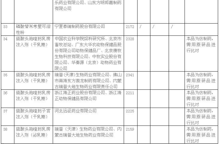 注:1、備注欄中標(biāo)注某公司產(chǎn)品為仿制藥的,采用該公司同品種產(chǎn)品開(kāi)展比對(duì)試驗(yàn)的,試驗(yàn)結(jié)果無(wú)效。