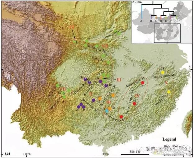 全國(guó)野生大鯢遺傳譜系地理分布格局圖
