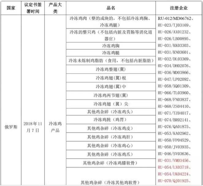 2005年,因俄羅斯爆發(fā)禽流感,中國(guó)政府禁止進(jìn)口俄羅斯禽肉類(lèi)產(chǎn)品。2018年11月,中俄達(dá)成互相供應(yīng)禽肉類(lèi)產(chǎn)品和乳制品協(xié)議,從此,維持13年的進(jìn)口俄羅斯禽肉類(lèi)產(chǎn)品禁令終于解除。