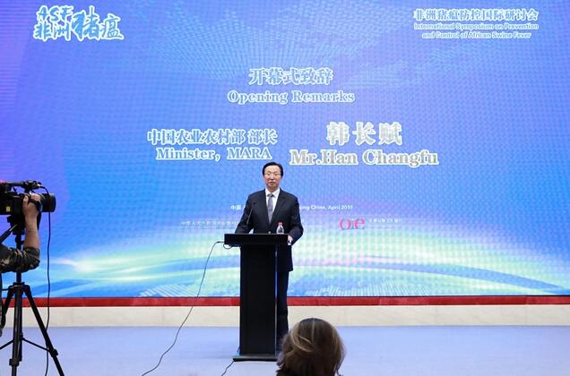 4月9日,由中國農(nóng)業(yè)農(nóng)村部與聯(lián)合國糧農(nóng)組織(FAO)、世界動(dòng)物衛(wèi)生組織(OIE)共同舉辦的非洲豬瘟防控國際研討會(huì)在京舉行。與會(huì)代表就疫情監(jiān)測(cè)預(yù)警、疫情根除和疫苗研發(fā)進(jìn)展等議題開展了廣泛交流,就加強(qiáng)防控合作,共同防范和化解非洲豬瘟帶來的風(fēng)險(xiǎn)進(jìn)行了深入探討。農(nóng)業(yè)農(nóng)村部部長(zhǎng)韓長(zhǎng)賦、OIE總干事艾略特和FAO助理總干事提詹尼等出席會(huì)議并致辭。