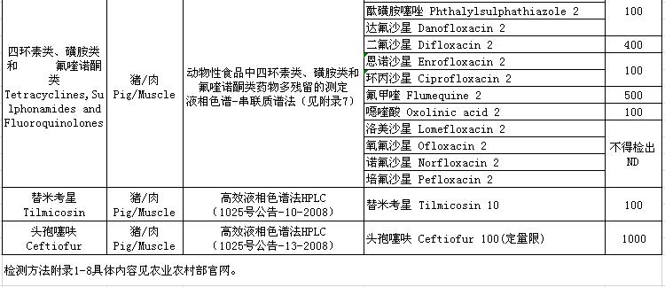 4.2019年度動(dòng)物及動(dòng)物產(chǎn)品獸藥殘留檢測(cè)方法及殘留限量