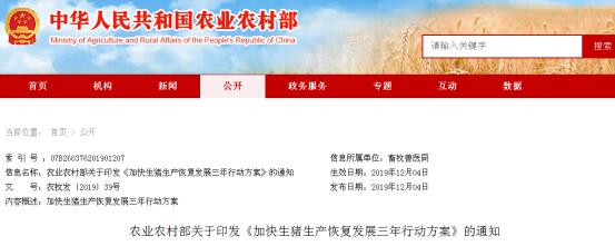 生產(chǎn)恢復目標:今年要盡快遏制生豬存欄下滑勢頭,確保年底前止跌回升,確保明年元旦春節(jié)和全國“兩會”期間豬肉市場供應基本穩(wěn)定;確保2020年年底前產(chǎn)能基本恢復到接近常年的水平,2021年恢復正常。