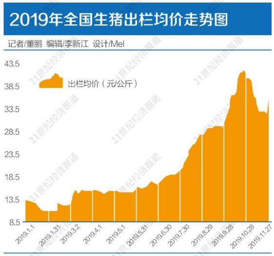 卓創(chuàng)資訊提供的數(shù)據(jù)顯示,2019年三季度,全國(guó)生豬出欄均價(jià)運(yùn)行區(qū)間在每公斤18.5元至30元,四季度價(jià)格雖然有所回落,但是最低價(jià)也未跌破30元/公斤。