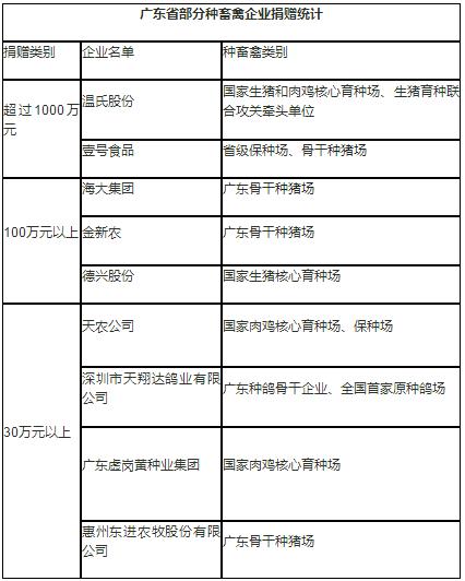 如今,全國上下共同努力抗擊疫情和復(fù)產(chǎn)復(fù)工,每個(gè)行業(yè)都在為早日戰(zhàn)勝疫情貢獻(xiàn)自己的力量,廣東省種畜禽企業(yè)也積極參與到其中,有的捐款、有的捐物、有的參加倡議活動(dòng)收貯養(yǎng)殖戶的家禽產(chǎn)品。據(jù)廣東省農(nóng)業(yè)農(nóng)村廳種業(yè)管理處統(tǒng)計(jì),16家廣東種畜禽相關(guān)企業(yè)已累計(jì)捐贈(zèng)4202.3萬元,其中捐贈(zèng)資金2168.4萬元,防疫物資和肉類食材、雞蛋等價(jià)值2033.9萬元,積極支援湖北武漢、荊州等地以及省內(nèi)醫(yī)院、公路檢查站軍警等一線防控部門。