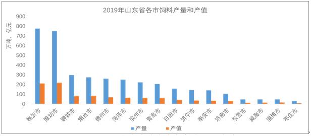 據(jù)中國飼料工業(yè)統(tǒng)計系統(tǒng)顯示:2019年臨沂市飼料產(chǎn)量776.2萬噸,同比下降8.1萬噸;產(chǎn)值211.6億元,同比下降8.7億元;濰坊市飼料產(chǎn)量750.5萬噸,同比增加55.2萬噸;產(chǎn)值219.2億元,同比增加10.3億元;臨沂、濰坊各自的產(chǎn)量和產(chǎn)值分別占到全省產(chǎn)量產(chǎn)值的20%左右。飼料產(chǎn)量在200萬噸以上、產(chǎn)值60億元以上的有聊城、煙臺、德州、菏澤、濱州、青島,6市合計的產(chǎn)量和產(chǎn)值占到全省產(chǎn)量產(chǎn)值的40%左右。整體看,臨沂、濰坊、聊城、煙臺、德州、菏澤、濱州、青島等8市合計的飼料產(chǎn)量和產(chǎn)值,占到全省產(chǎn)量產(chǎn)值的80%。