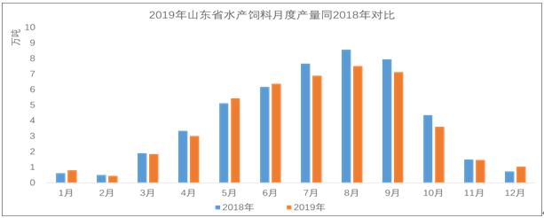 圖6 2019年山東省水產(chǎn)飼料月度產(chǎn)量同2018年對比